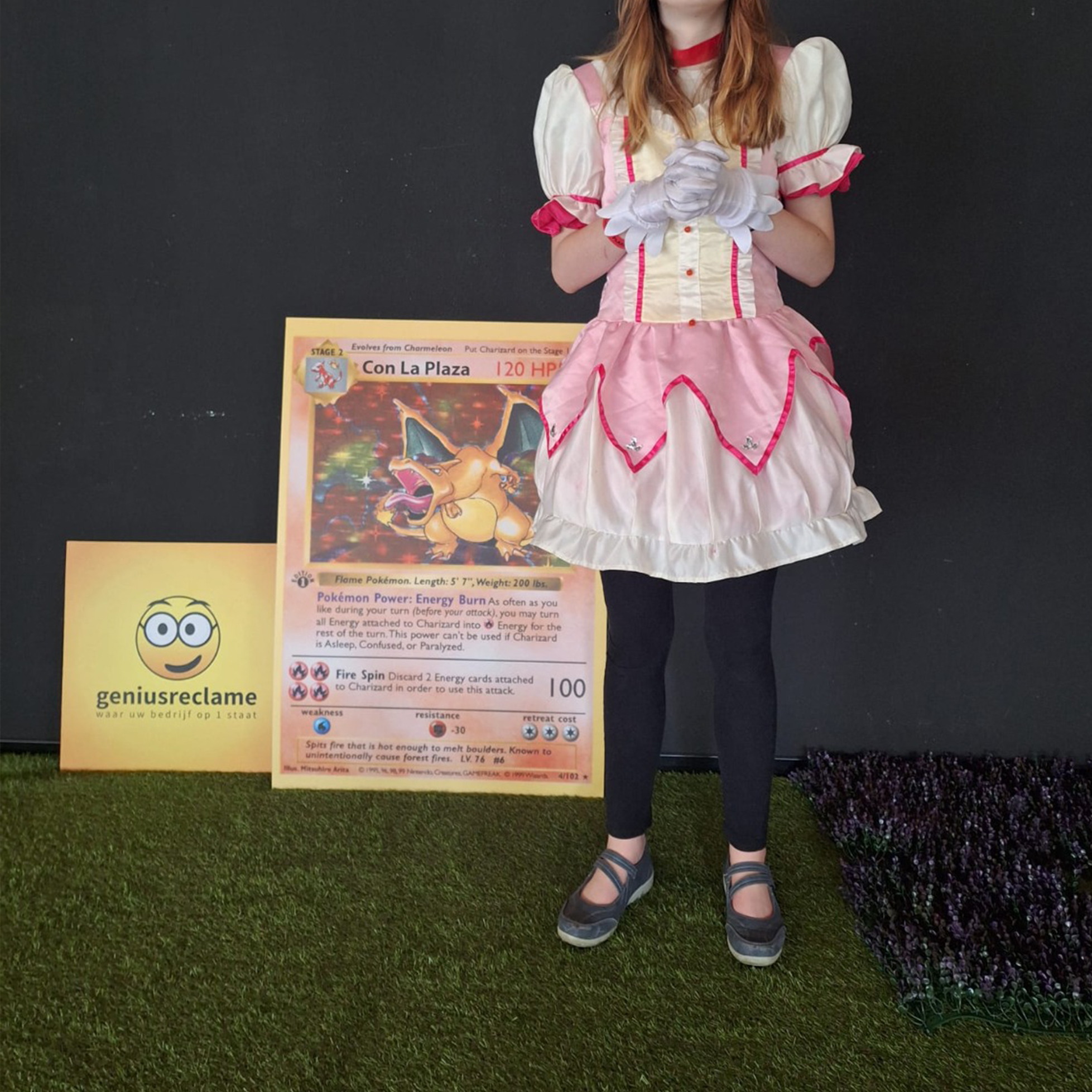 Geniusreclame heeft voor het event een levensgrote Pokémon kaart mogen realiseren van stevig karton!