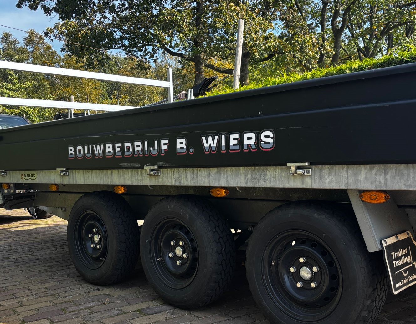 Hiervoor hebben wij deze aanhanger mogen bestickeren met hun bedrijfsnaam aan 2 zijkanten en achterkant!